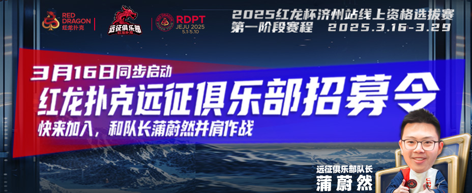 2024年10月16日,随着金手链得主蒲蔚然加入红龙战队,为了秉承帮助中国玩家征战国际顶尖舞台的愿景,红龙远征俱乐部应运而生。 在2024济州扑克嘉年华中,首次出征的红龙远征俱乐部的成员们以卓越的竞技实力创造辉煌战绩: 四名会员成功闯入主赛事决赛桌 六名会员摘得边赛冠军 累计斩获185万RMB奖金 红龙远征俱乐部会员专享泡沫保护,为参赛玩家提供强大的心理支持和资金支持! 在济州扑克嘉年华的赛场中,共为五名玩家送出俱乐部保护福利金31980元。 事实胜于雄辩,红龙远征俱乐部正是无数扑克爱好者梦想起航的地方,也是通向国际荣誉的坚实桥梁。 2025新篇章:线上选拔赛与远征招募令同步开启 在这激动人心的时刻,我们诚邀更多热爱扑克的玩家加入红龙远征俱乐部,实现你的扑克梦! 2025年3月16日,全新一届的红龙扑克线上资格选拔赛正式拉开帷幕,同时也标志着红龙远征俱乐部新一轮的招募令正式开启。 无论你是初出茅庐的新秀,还是沉稳老练的竞技高手,这里都将成为你走向国际大赛、挑战极限的平台。 红龙扑克不仅为您提供通往顶级赛事的舞台,更为远征队会员打造了七大永久福利,助力每一位会员在征程中全情投入、无后顾之 […]