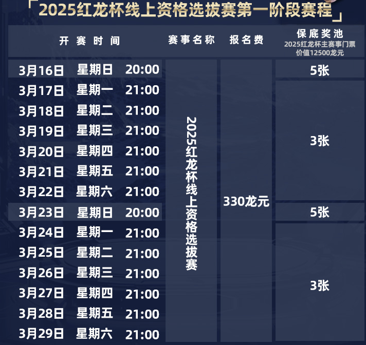 红龙一周年庆典狂欢赛事节重点赛事预告新鲜出炉